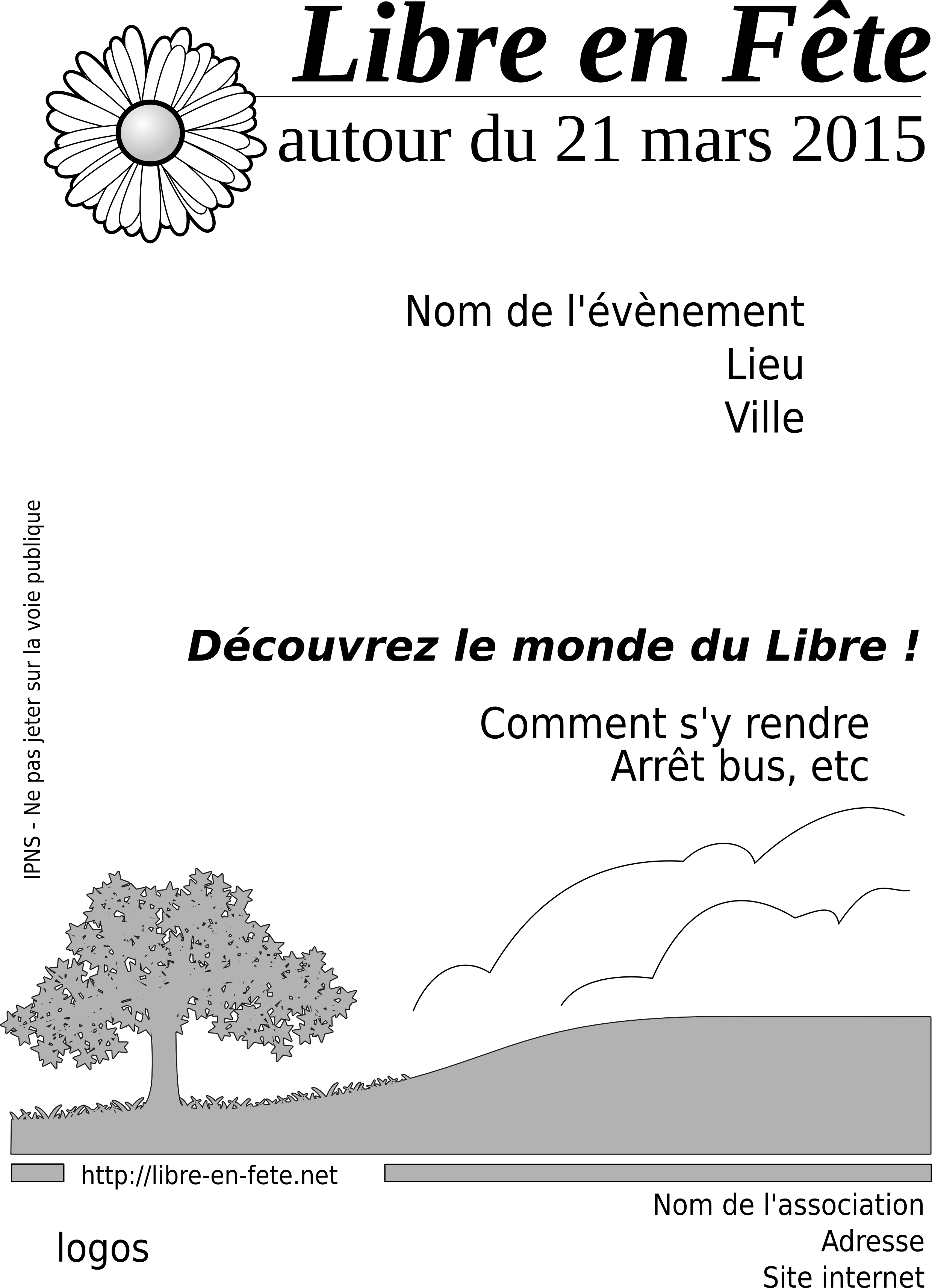 - Affiche noir et blanc, au format source SVG, à éditer avec le Logiciel Libre Inkscape. Vous pouvez également visualiser ce modèle au format PNG